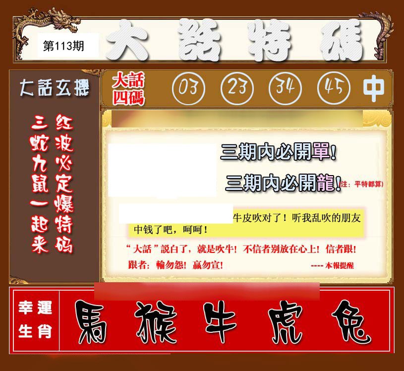 | 113期推荐⑤肖:虎猴狗牛鸡 |