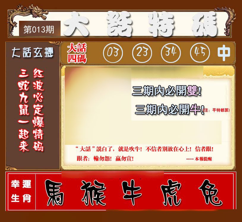 | 013期推荐⑤肖:鼠牛虎鸡龙 |