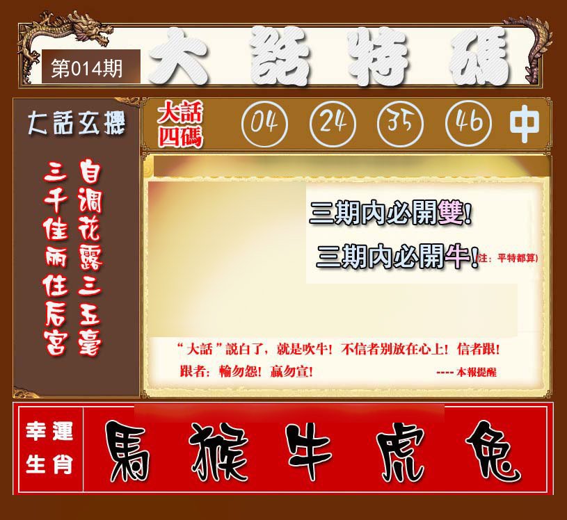 | 003期推荐⑤肖:虎牛蛇马狗 |
