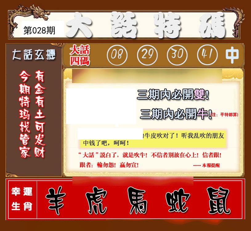 028期六肖中特【猴鸡虎鼠猪龙】开:?00 |