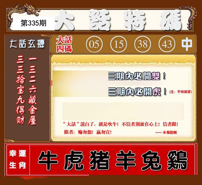 | 334期推荐⑤肖:虎羊兔猴马 |