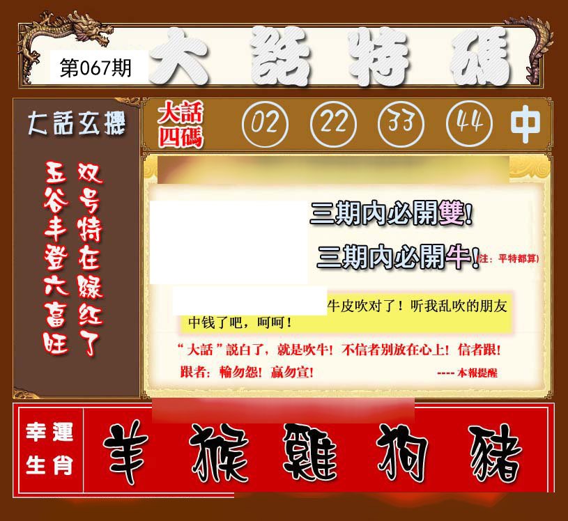 | 065期推荐③肖:牛狗龙 |