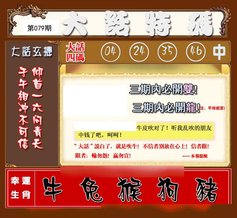 079期六肖中特【猪龙牛兔狗虎】开:?00 |