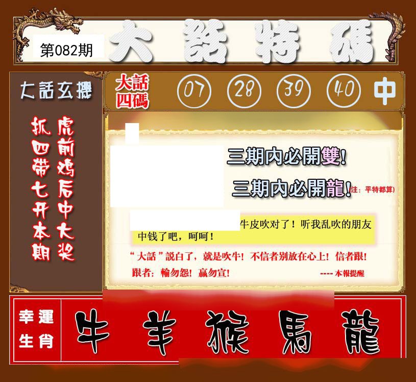 | 082期推荐⑤肖:鼠虎牛马狗 |