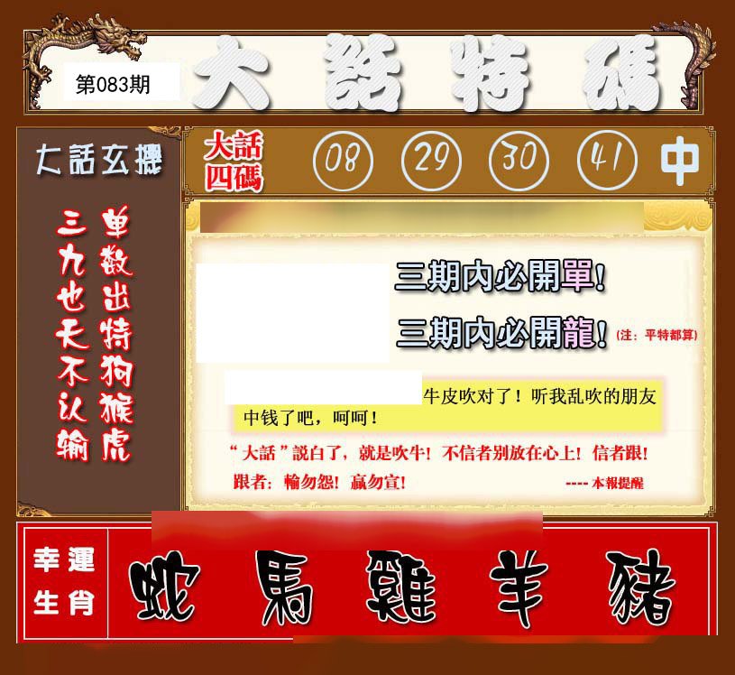 | 083期推荐⑤肖:虎兔马鼠羊 |