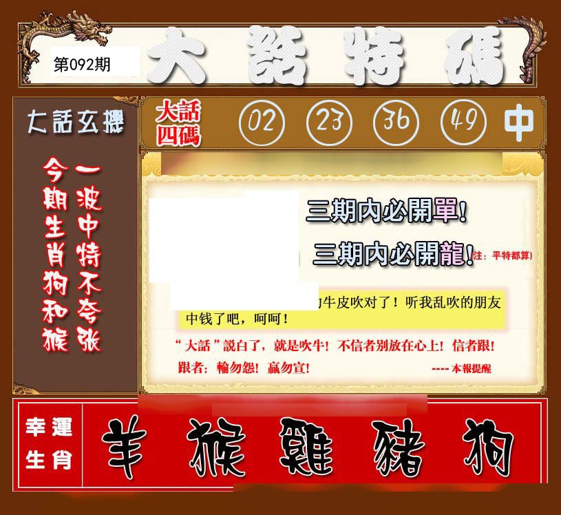 | 092期推荐⑤肖:狗虎鼠羊兔 |