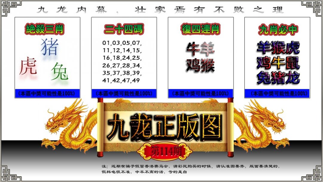 108期:四组三连肖 【鸡狗蛇】【猪龙羊】 【鼠虎羊】【牛狗龙】 | |