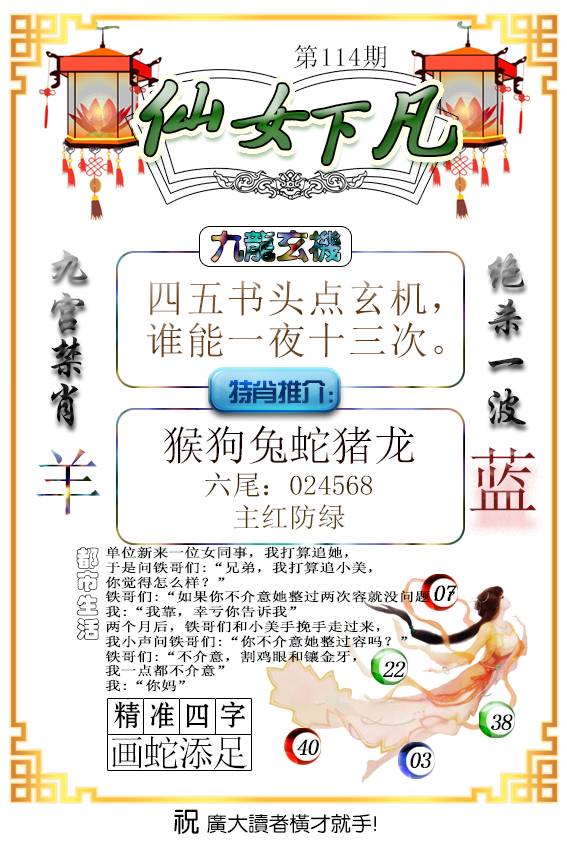 | 108期 财富波色:蓝红 开:蛇02 | |