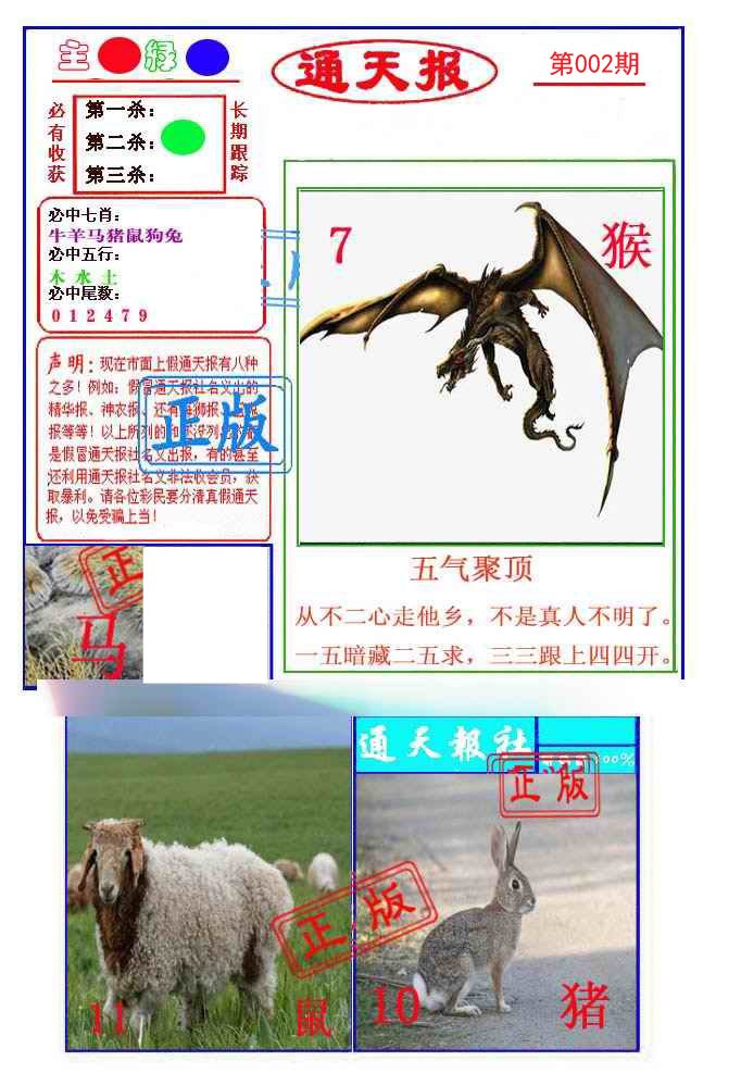 | 002期推荐⑤肖:鼠马龙猪牛 |