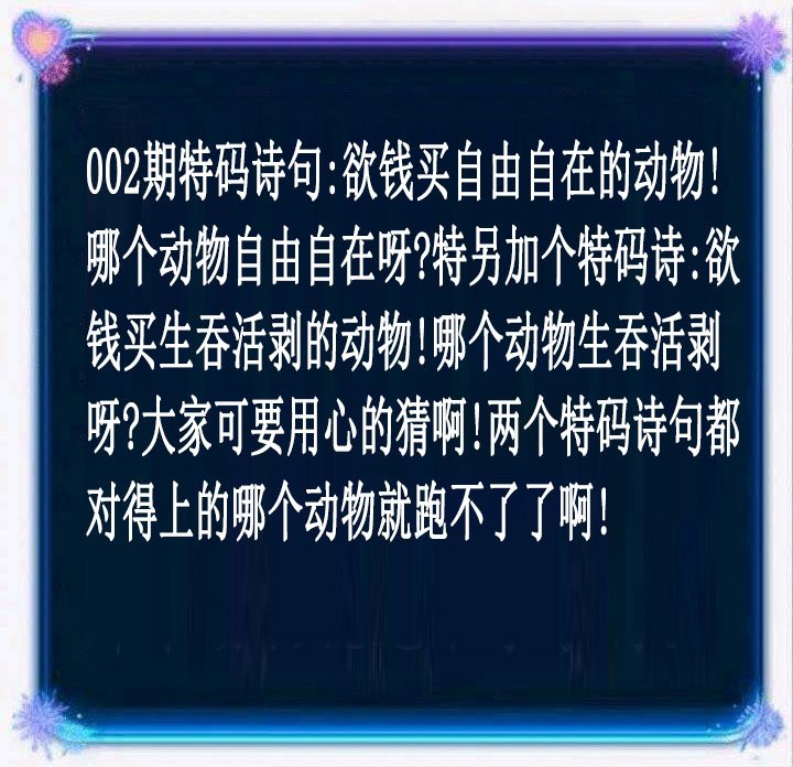 002期六肖中特【兔马虎鼠狗鸡】开:?00 |