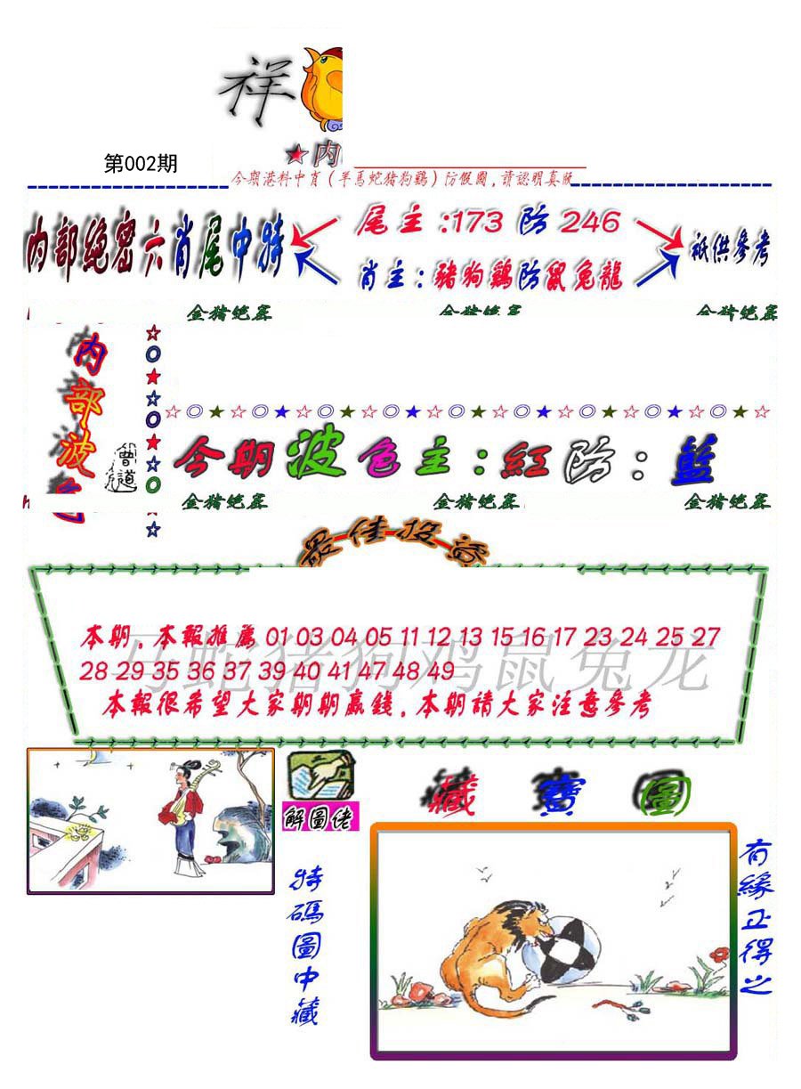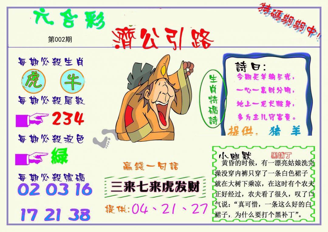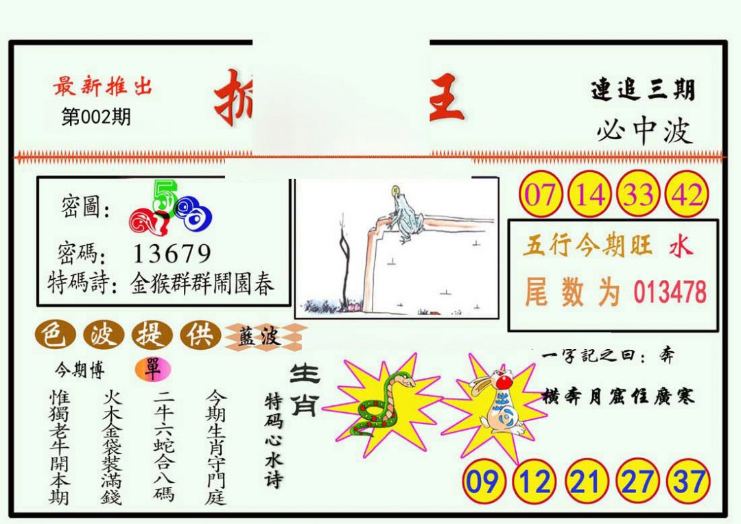 001期六尾中特『2 1 4 3 8 9尾』开:龙38 |