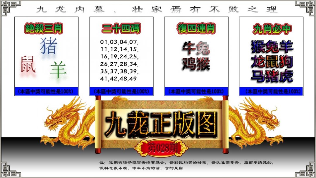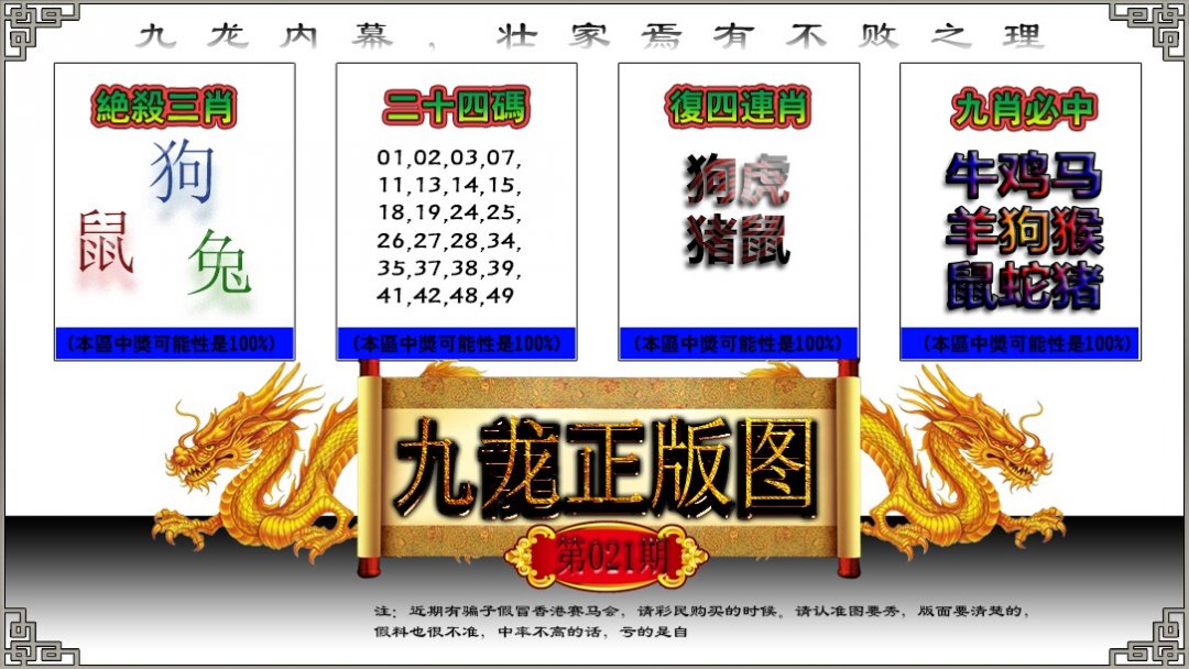 021期:四组三连肖 【牛蛇羊】【龙虎鼠】 【龙羊猪】【猴龙鸡】 | |