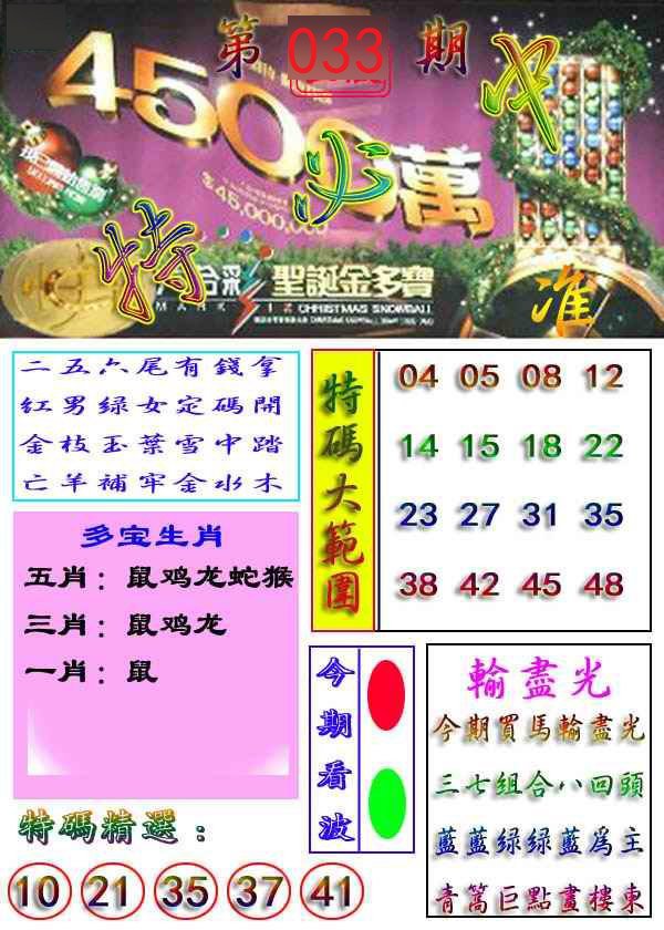 | 033期推荐⑤码:04 15 11 24 03 38 |