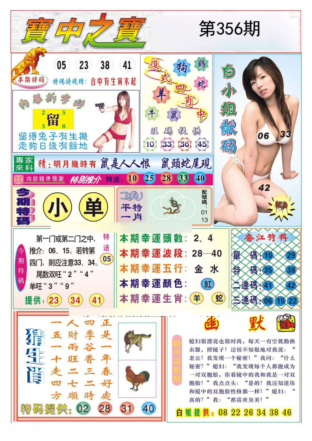 | 355期 财富波色:蓝绿 开:猴46 | |