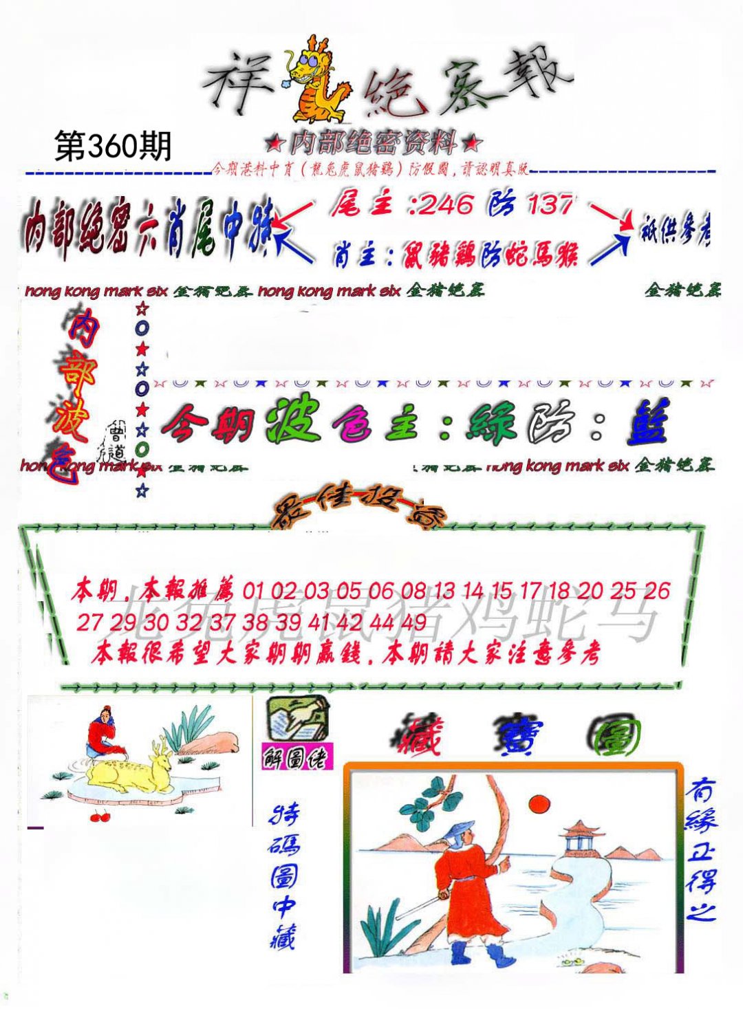 | 359期 财富波色:绿红 开:龙02 | |