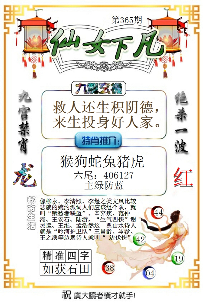 365期六尾中特『6 1 9 7 4 8尾』开:0 |