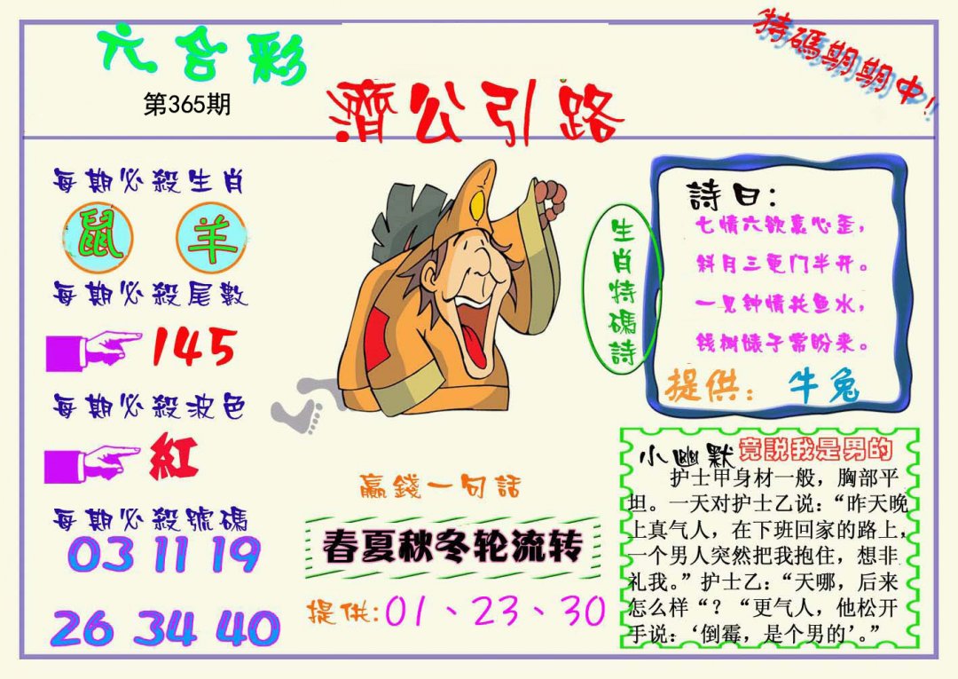| 365期推荐⑤肖:牛羊猪龙猴 |