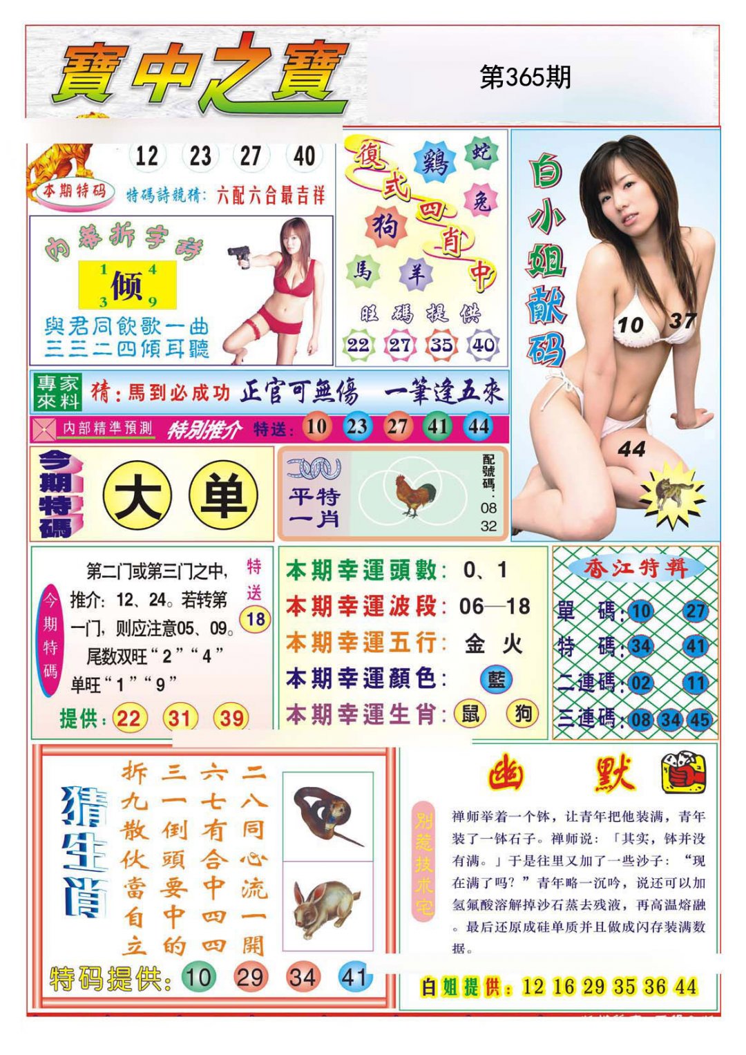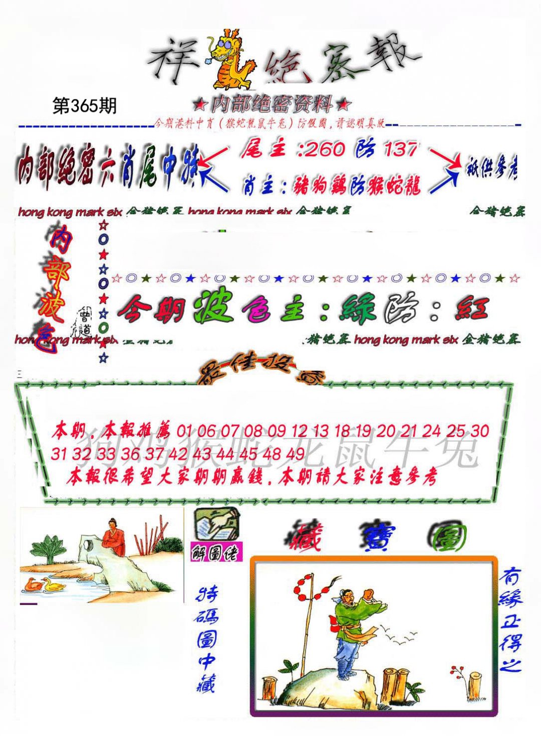 | 365期 财富波色:红绿 开:?00 | |