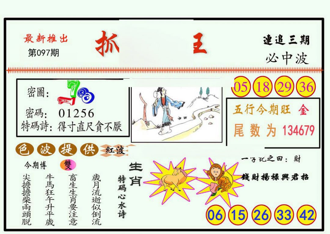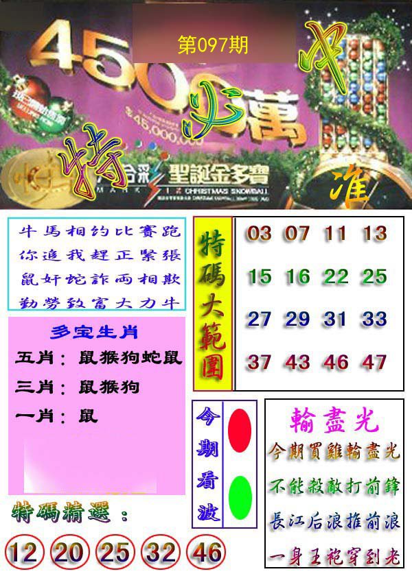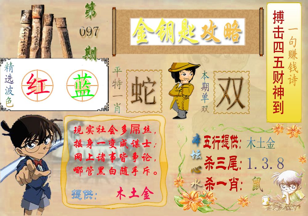| 096期 财富波色:红蓝 开:鼠31 | |