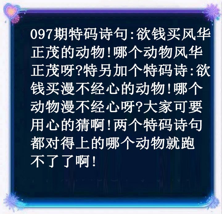 097期六肖中特【狗牛兔羊马鼠】开:?00 |