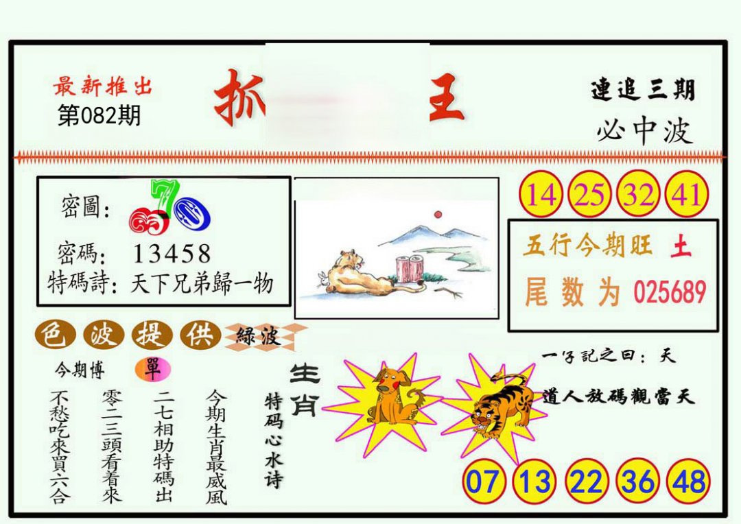 082期六尾中特『4 1 2 5 8 3尾』开:猴35 |