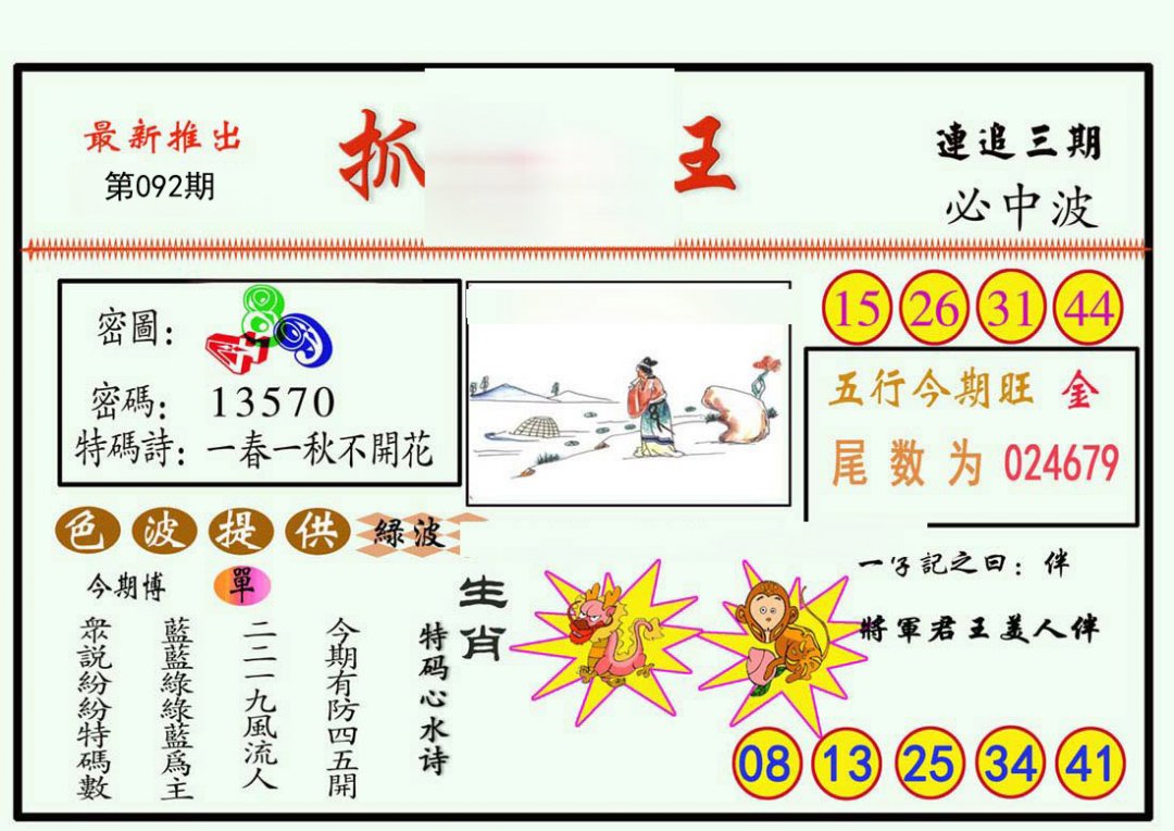 090期六尾中特『3 8 9 1 6 7尾』开:猴23 |