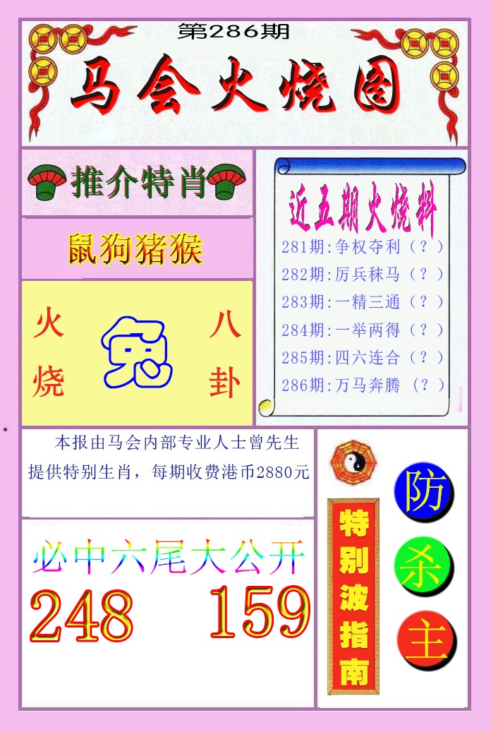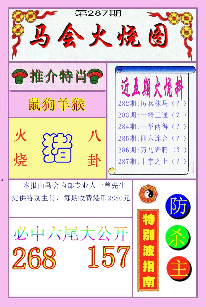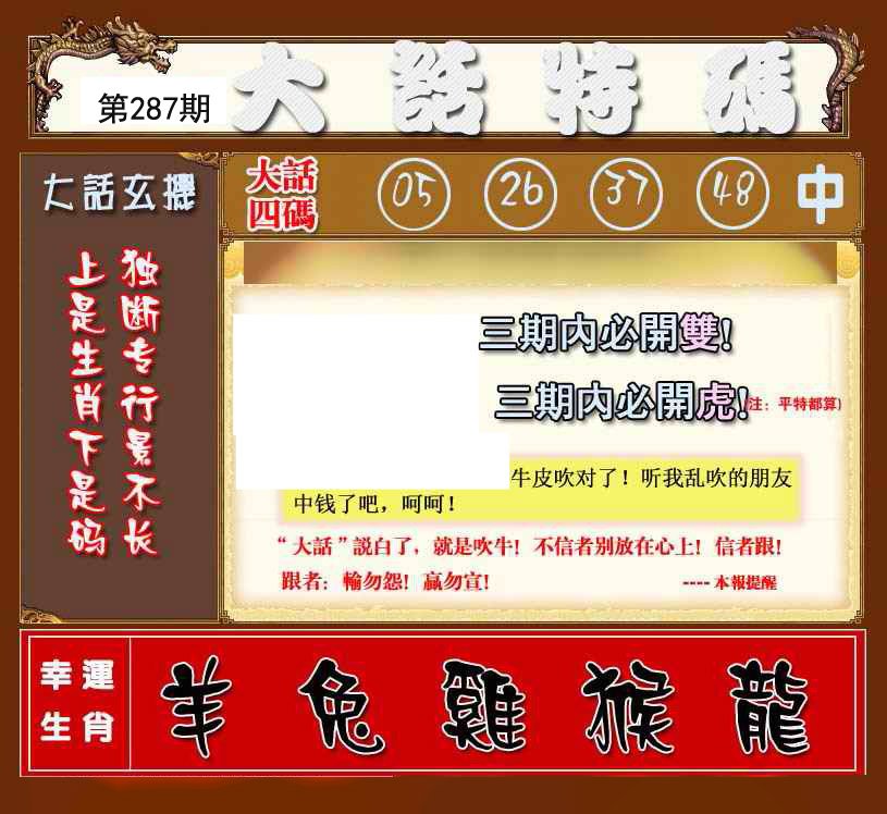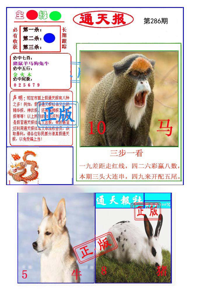 284期推荐⑤肖:龙猴虎鼠猪 |
