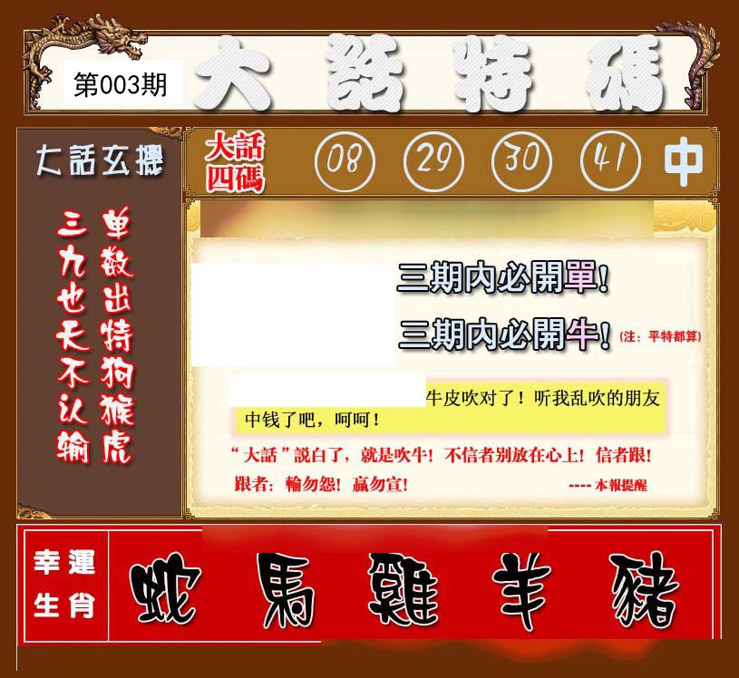 | 003期推荐⑤肖:虎牛蛇马狗 |