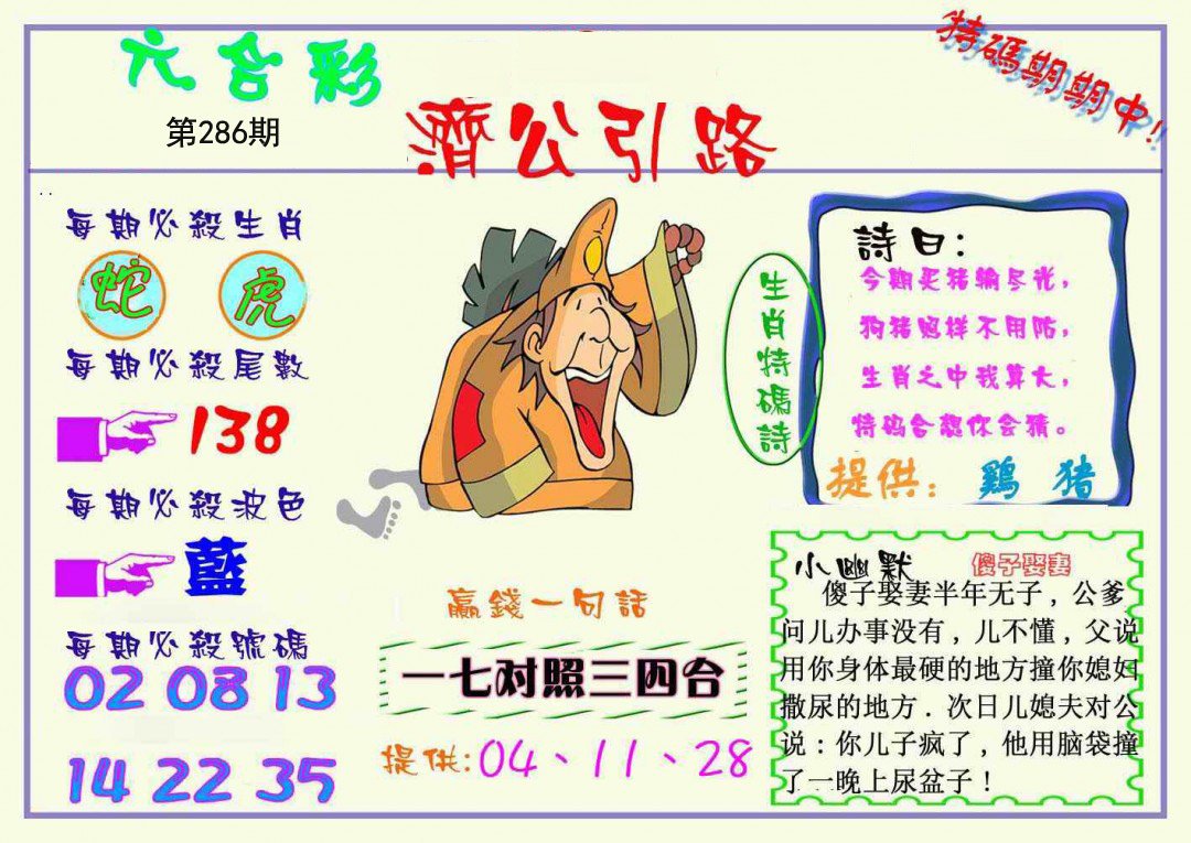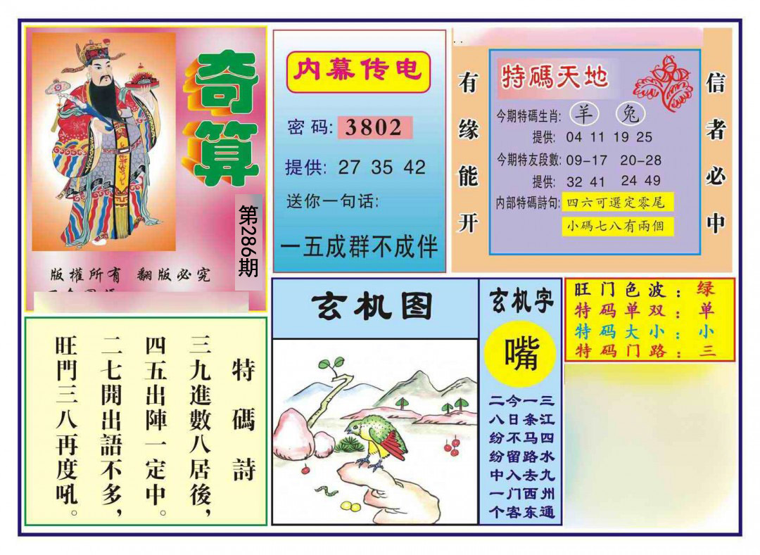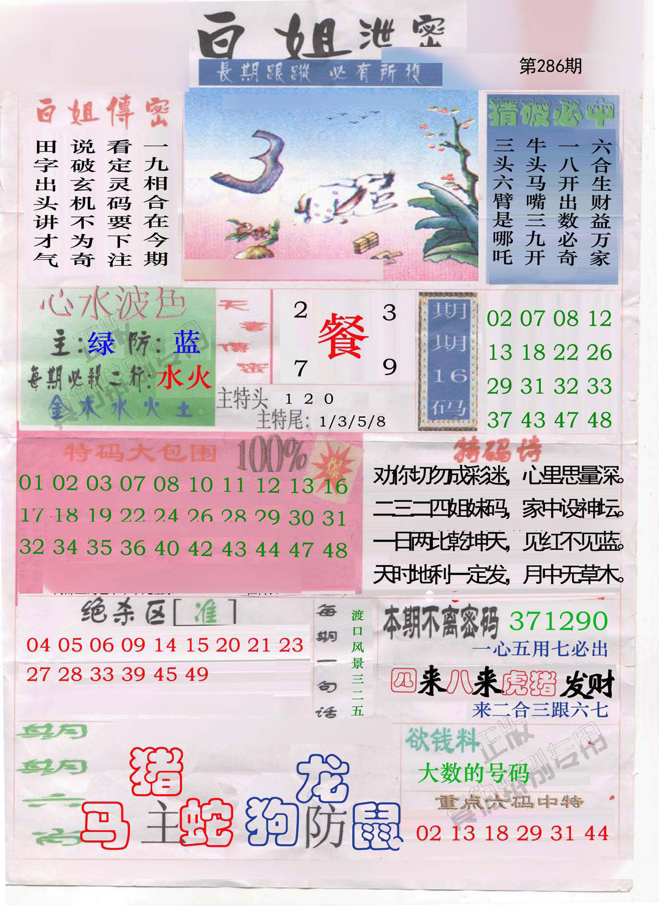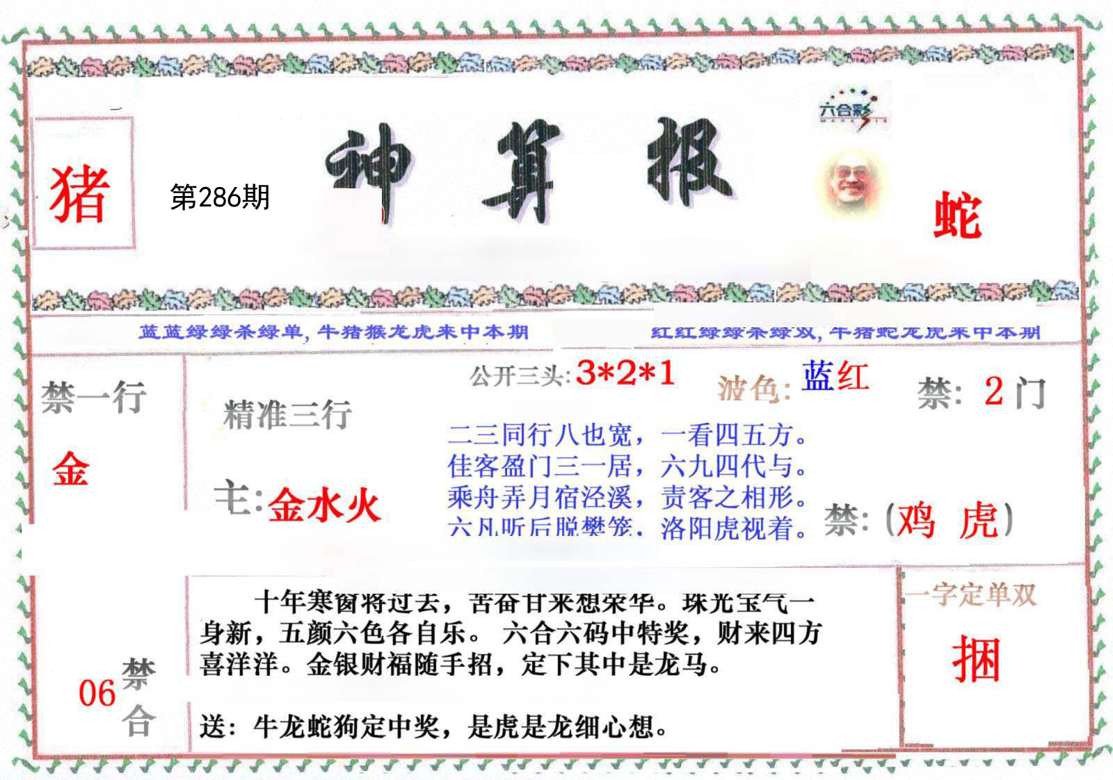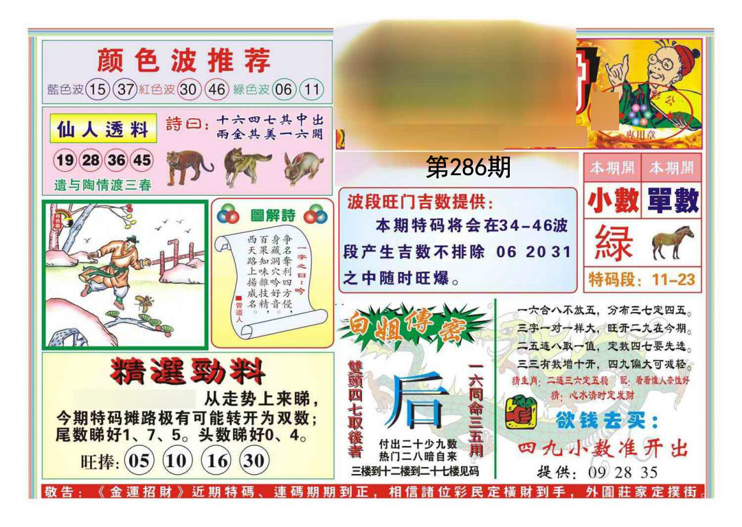 286期 财富波色:绿蓝 开:?00 | |