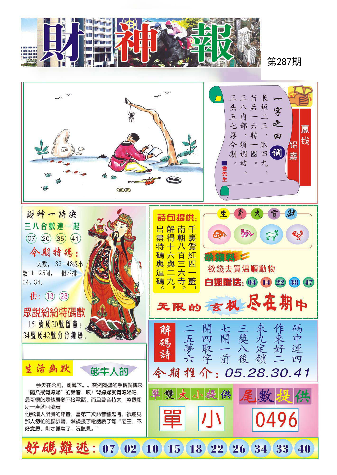 285期六尾中特『3 0 1 4 5 2尾』开:牛05 |