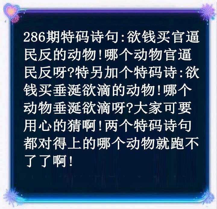 286期六肖中特【兔牛蛇虎羊猴】开:?00 |