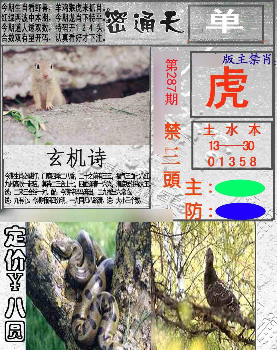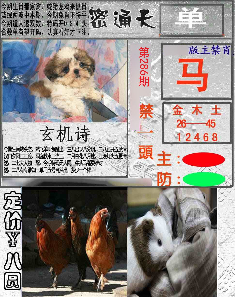 286期推荐⑤肖:鸡兔蛇虎马 |