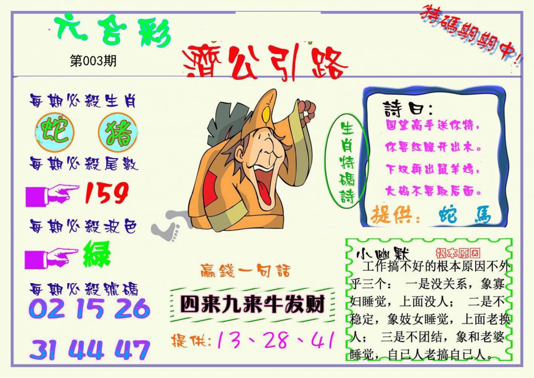 003期:大小中特【大大大】开:?00 |
