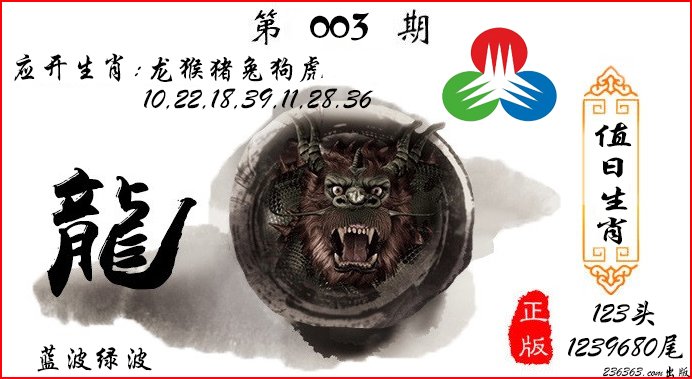 | 003期 财富波色:蓝绿 开:?00 | |